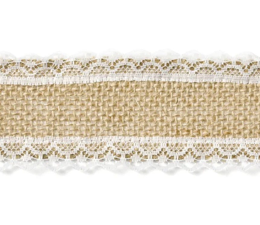 Detta jutevävsband med spets kombinerar rustik charm med romantiska detaljer. Den naturliga juteväven ger ett lantligt uttryck medan den dekorativa spetskanten tillför en mjuk och elegant känsla. Bandet passar perfekt till presentinslagning, blomsterarrangemang, bröllop, pyssel och annan dekoration.